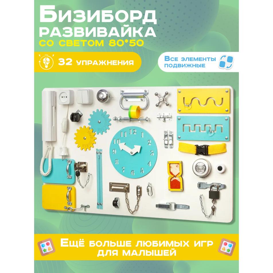 Бизиборд односторонний 50х80 см, бело голубой